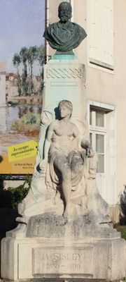 Monumento a Alfred Sysley, Busto del artista, ciudadano adoptado de Moret-sur-Loing, colocado en la cima de una estela decorada con una alegoría de la ciudad.