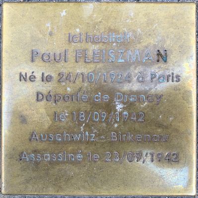 Stolperstein en memoria de Paul Fleiszman, stolperstein à Fontenay-sous-Bois, France