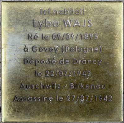 Stolperstein en memoria de Lyba Wajs, stolperstein à Fontenay-sous-Bois, France