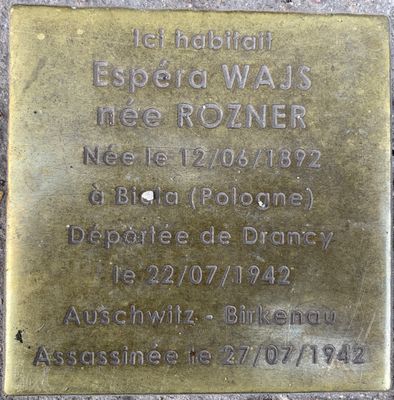 Stolperstein en memoria de Espéra Wajs, stolperstein à Fontenay-sous-Bois, France