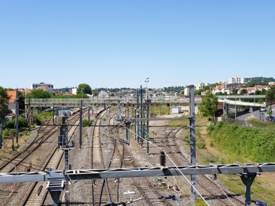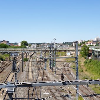 Passerelle piétonne sud de la gare de Vichy, passerelle piétonne métallique passant au dessus des voies au sud de la gare de Vichy