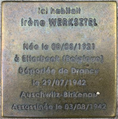 Stoleperstein à la mémoire d'Irène Werksztel, stolperstein à Fontenay-sous-Bois, France