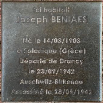 Stoleperstein à la mémoire de Joseph Beniaes, stolperstein à Fontenay-sous-Bois, France