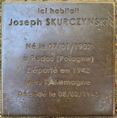 Stoleperstein à la mémoire de Joseph Skurczynski, stolperstein à Fontenay-sous-Bois, France