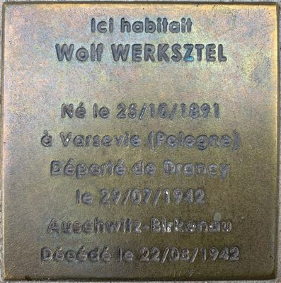 Stoleperstein à la mémoire de Wolf Werksztel, stolperstein à Fontenay-sous-Bois, France