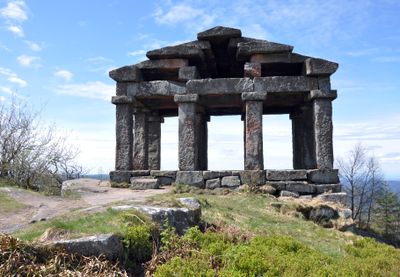El Templo de Donon presenta cuatro pilares monolíticos cuadrados que sostienen un techo de losas de piedra a 1008 metros de altura.