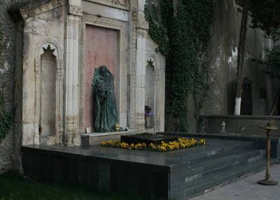El Panteón de Mtatsminda alberga tumbas ornamentadas y estatuas de personajes georgianos notables en el patio de la Iglesia de San David.