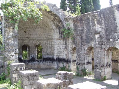 Las fuerzas otomanas destruyeron parcialmente la iglesia en 1576, dejando visibles solo las ruinas originales de la basílica en la estructura actual.