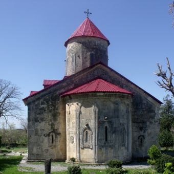 La Catedral de Tsaishi muestra una arquitectura eclesiástica georgiana tradicional con una cúpula central y tallas en piedra en sus muros exteriores.