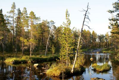 El Área Silvestre Vätsäri abarca 1,550 kilómetros cuadrados junto al lago Inari, con bosques de taiga, pantanos y miles de lagos pequeños.