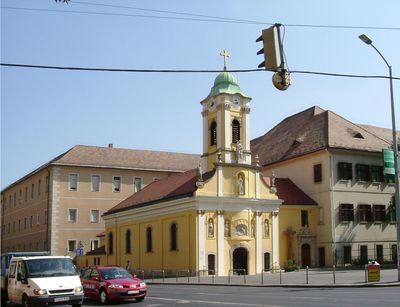 La capilla fue construida a principios de los años 1700 después de un brote de peste que afectó la zona. Una placa de mármol en el edificio marca el nivel del agua de la inundación del Danubio de 1838.