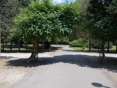 Un pabellón de música, diseñado por Dezső Hegedűs para la Exposición Agrícola Nacional de 1929, fue reconstruido en 2001 tras su eliminación en 1945.