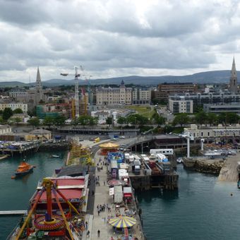 Dún Laoghaire es una localidad costera junto al mar de Irlanda en el condado de Dublín que se extiende a lo largo de una dársena enmarcada por dos muelles de piedra. La calle principal corre paralela a la costa y conecta zonas residenciales, tiendas y parques con el centro marítimo.