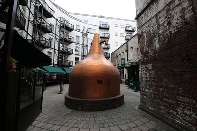 La Antigua Destilería Jameson exhibe alambiques de cobre tradicionales, recipientes de fermentación de madera y un almacén de maduración de whiskey irlandés.