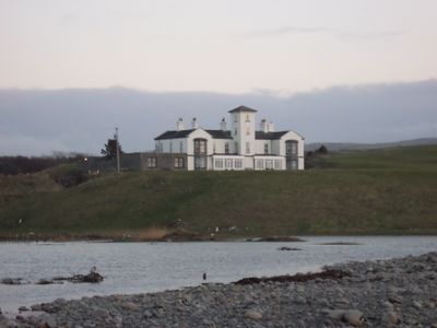 Moy House es una casa señorial ubicada en una ladera con dos niveles, con una fachada de un piso que oculta el piso inferior con comedor y biblioteca con vistas al océano Atlántico. El edificio combina arquitectura clásica con interiores modernizados y funciona como restaurante y alojamiento.