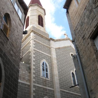 Situada al norte del caravanserai Khan el-Faranj, la iglesia mantiene servicios católicos regulares y recibe visitantes interesados en arquitectura e historia religiosa.