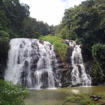 Las cataratas Abbey, ubicadas a 8 kilómetros de Madikeri, caen 70 pies sobre amplias rocas entre plantaciones privadas de café.