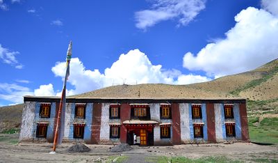 La estructura del monasterio, diseñada como un castillo tibetano, surgió a principios del siglo XIV durante la expansión del budismo Sakyapa bajo patrocinio mongol.