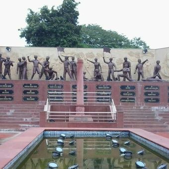 Situado en el Puente Indora 10 en la Carretera Kamptee, el memorial incluye placas detalladas que explican la contribución de cada persona representada.