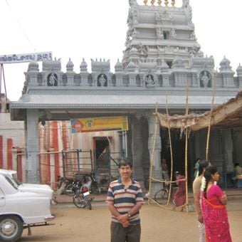El templo Prasanna Venkatachalapathy se encuentra en la orilla norte del río Kaveri con un santuario principal que muestra una deidad de cuatro brazos.