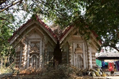 La estructura del templo refleja las casas tradicionales rurales de Bengala, con dos secciones conectadas que forman un pórtico y un santuario.