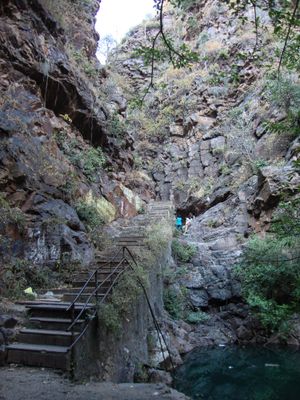 Pandupole, situada en la Reserva de Tigres Sariska, presenta una cascada que fluye sobre rocas calizas y alberga un templo dedicado a Hanuman.