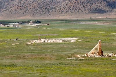 Las ruinas de Pasargadae se extienden por 1.6 kilómetros cuadrados, incluyendo plataformas de piedra, cimientos de palacios, jardines y la tumba de Ciro.