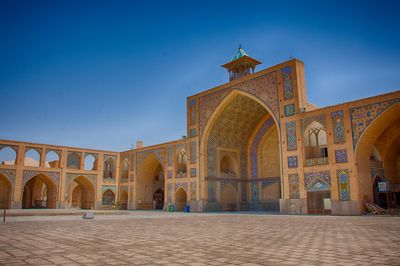Situada cerca del Gran Bazar de Isfahán en el Distrito 3, la mezquita incorpora materiales tradicionales como ladrillo, yeso y azulejos cerámicos.