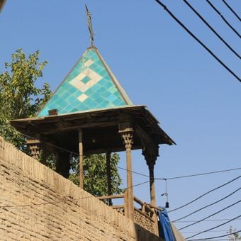 La Mezquita Ilchi exhibe elementos persas tradicionales con patrones geométricos en ladrillo, mortero y azulejos en su sala de oración y muros exteriores.