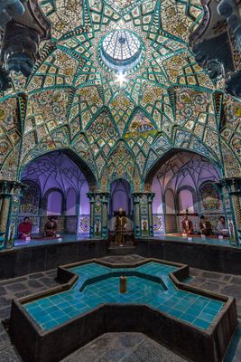 Construido durante el reinado de Ahmad Shah Qajar e inaugurado en 1915, este baño público representa los últimos logros arquitectónicos de la dinastía Qajar.