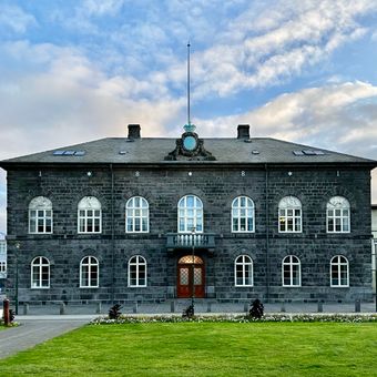 El Alþingishúsið es el edificio del parlamento en Reykjavík, construido en piedra diabasa gris con diseño neoclásico. Se encuentra junto a la plaza Austurvöllur y alberga la cámara de debates principal junto con oficinas parlamentarias adicionales en estructuras adyacentes.