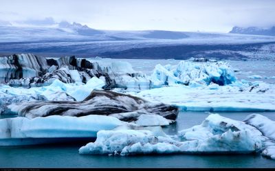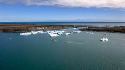 Jökulsárlón es un lago glaciar al pie del Vatnajökull en la región oriental de Islandia, formado por témpanos que se desprenden del Breidamerkurjokull. Los bloques de hielo flotantes se desplazan lentamente por la cuenca antes de desaparecer por un estrecho paso hacia el océano.