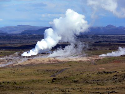Gunnuhver, Manantial geotermal en península de Reykjanes, Islandia.