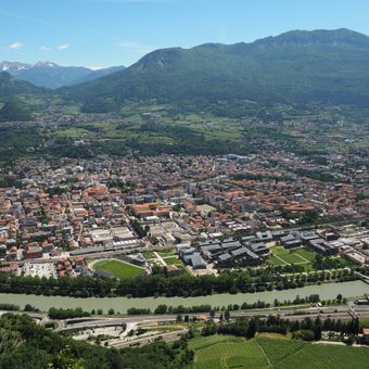 La ciudad se extiende junto al río Adigio, rodeada por tres montañas a una altitud de 190 metros en el noreste de Italia.
