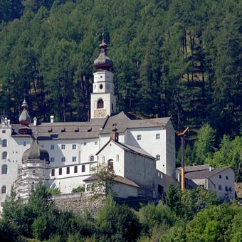 La abadía de Marienberg es un monasterio benedictino ubicado en las montañas sobre el pueblo de Burgeis, que alberga una iglesia, un museo, dependencias de monjes y habitaciones para huéspedes. El complejo funciona como comunidad religiosa viva y como lugar donde los visitantes pueden conocer la vida monástica.
