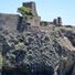 El castillo medieval se alza directamente sobre una enorme roca de basalto negro que emerge del Mar Mediterráneo, creando una fortaleza natural.