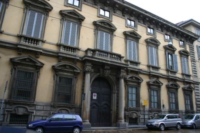 Situado en Corso di Porta Romana 6, el palacio funciona actualmente como espacio residencial y oficinas mientras conserva sus elementos arquitectónicos originales.