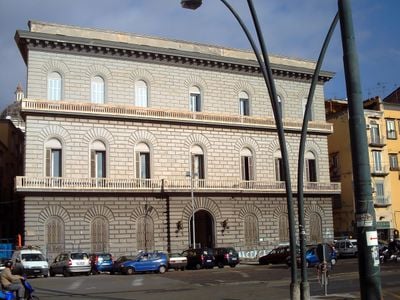 El diseño arquitectónico del edificio se inspira directamente en el Palazzo Pitti de Florencia, adaptando elementos toscanos al contexto napolitano.