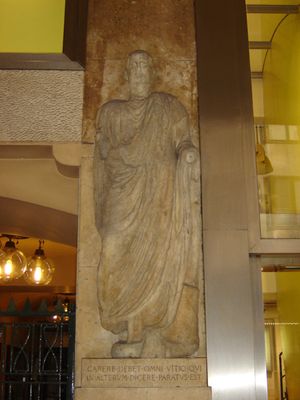 La escultura del siglo III recibió una nueva cabeza durante el período medieval y funcionó como tablón de anuncios político durante el dominio austriaco.