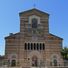 Santa Maria Liberatrice presenta arcos redondeados, muros gruesos de piedra y arcadas decorativas que caracterizan el movimiento arquitectónico neorrománico del siglo XX.
