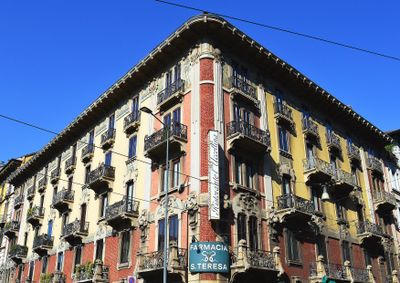 El edificio muestra cómo los ciudadanos adinerados de Milán a principios de 1900 demostraban su modernidad a través de fachadas refinadas. En la planta baja, tiendas y una farmacia invitan al uso diario, convirtiéndolo en parte de la vida cotidiana del barrio.