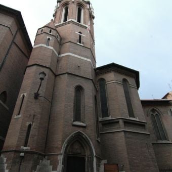 La Iglesia de Todos los Santos presenta arcos puntiagudos, líneas verticales y tallas en piedra típicas de la arquitectura eclesiástica neogótica europea.