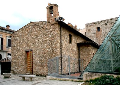 La iglesia, dedicada originalmente a San Getulio en 1175, se asienta sobre los restos de una domus romana del periodo bizantino del siglo VI.