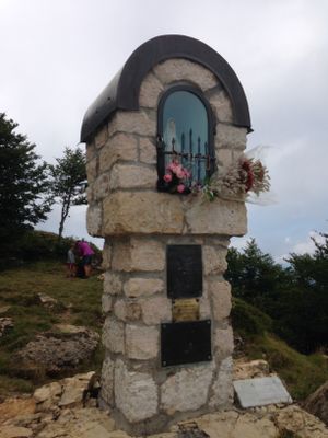 Una cruz de madera, instalada en la cumbre en 1977, marca el lugar donde cruces anteriores fueron destruidas por rayos a lo largo de los años.