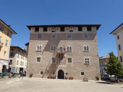 Palazzo Assessorile, medieval palace, now an exhibition and conference venue in Cles, Trento, Trentino Alto-Adige