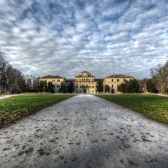 El Palazzo del Giardino es un palacio de estilo barroco y neoclásico en el parque de Parma, Italia. El edificio cuenta con múltiples salas con frescos ornamentados y decoraciones de estuco detalladas visibles en sus techos y paredes.