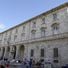 El exterior del palacio presenta una fachada de travertino con cinco arcos, decorada con columnas cilíndricas y marcos de ventanas con cariátides y atlas.