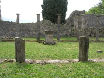 Construida en el siglo II aC durante el período samnita, esta estructura funcionó como gimnasio hasta la erupción del Vesubio en 79 dC.
