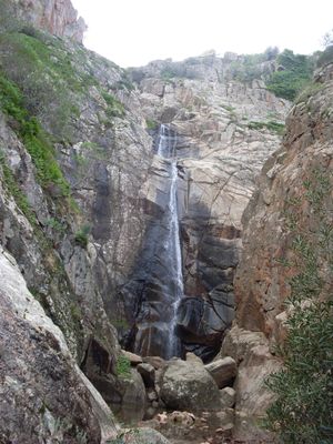 La cascada forma tres caídas de agua separadas, con la sección más alta midiendo 30 metros, lo que la convierte en la más alta de Cerdeña.