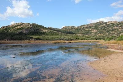 El río Berchida forma una pequeña laguna en su desembocadura, creando un hábitat para diversas especies animales en el ecosistema mediterráneo.
